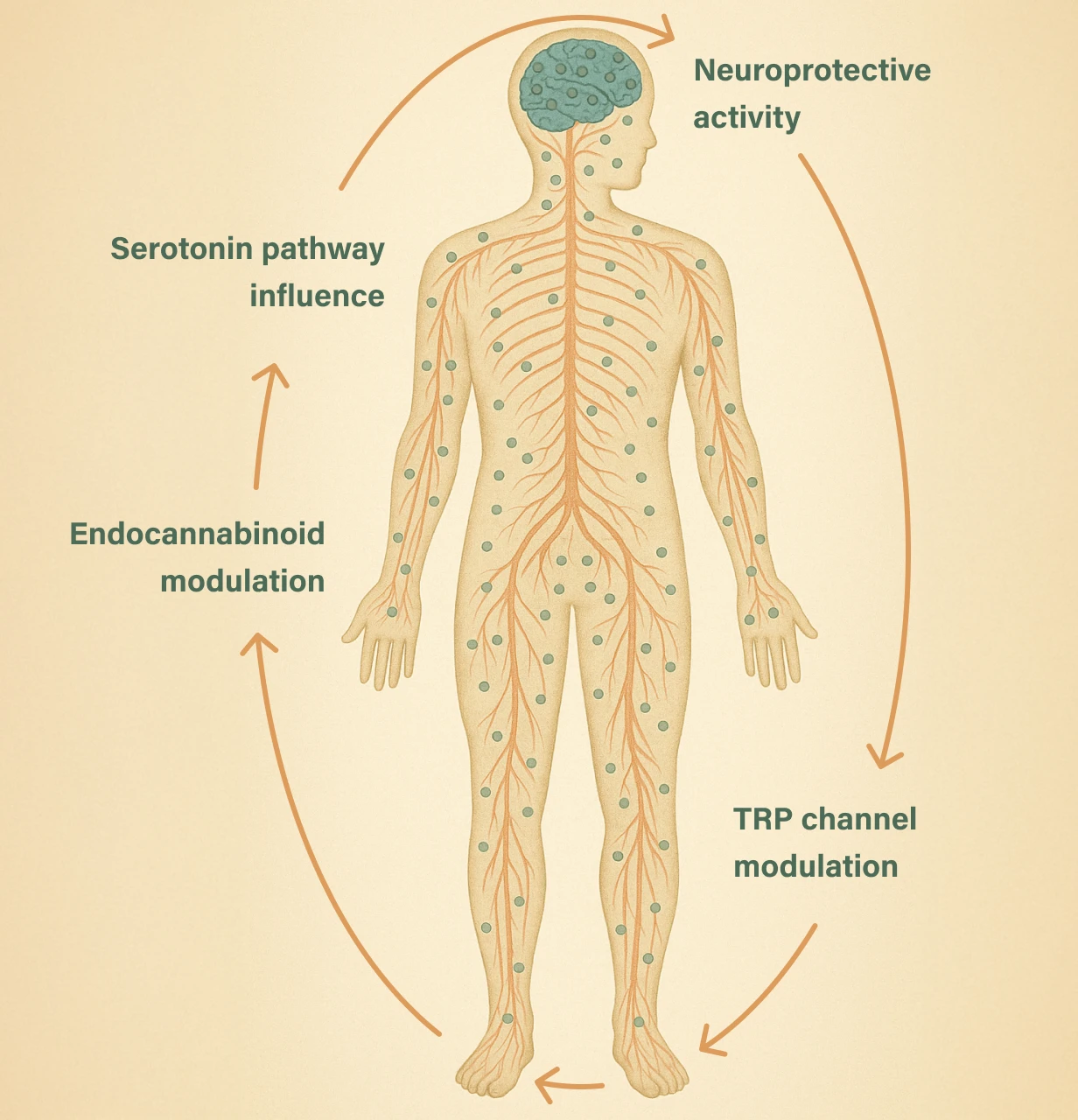 TruCBN™ also interacts with serotonin pathways that regulate the sleep-wake cycle, TRP channels involved in pain and temperature regulation, and has neuroprotective properties that support brain health during sleep.